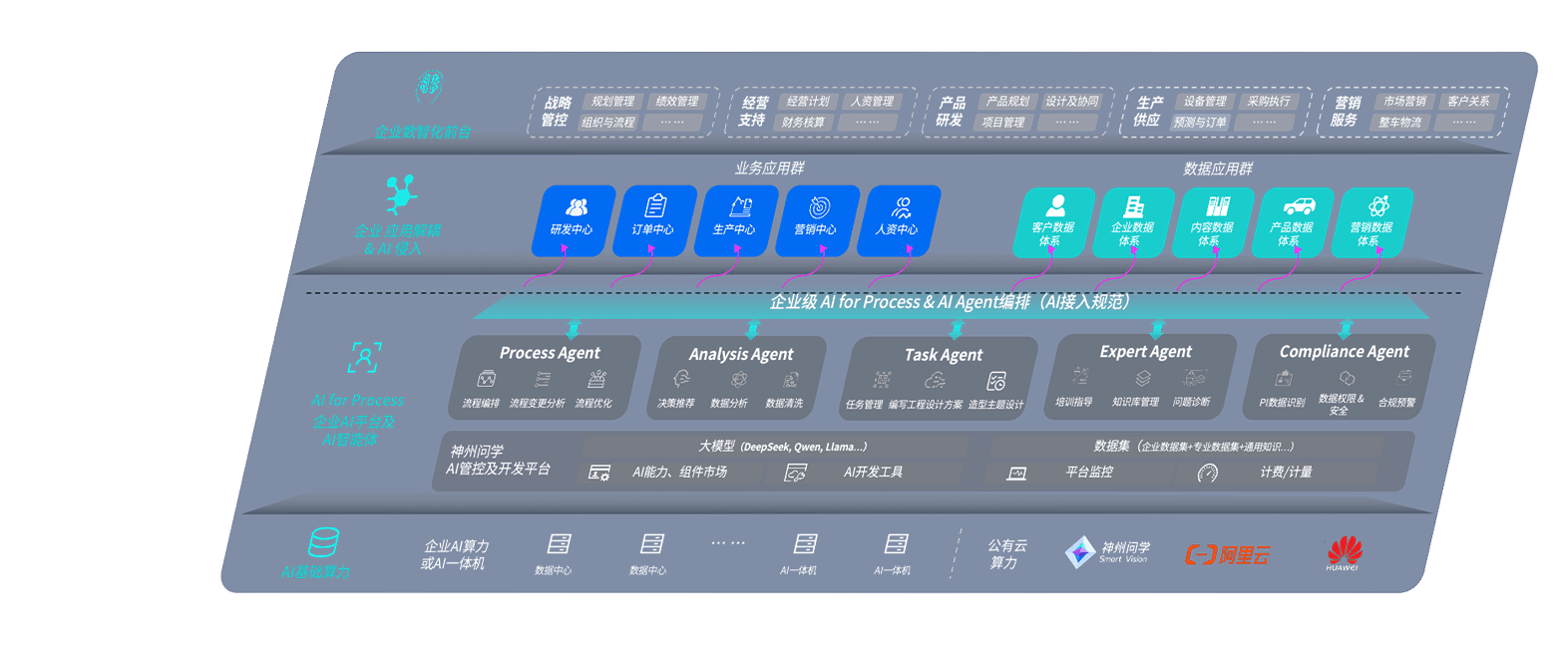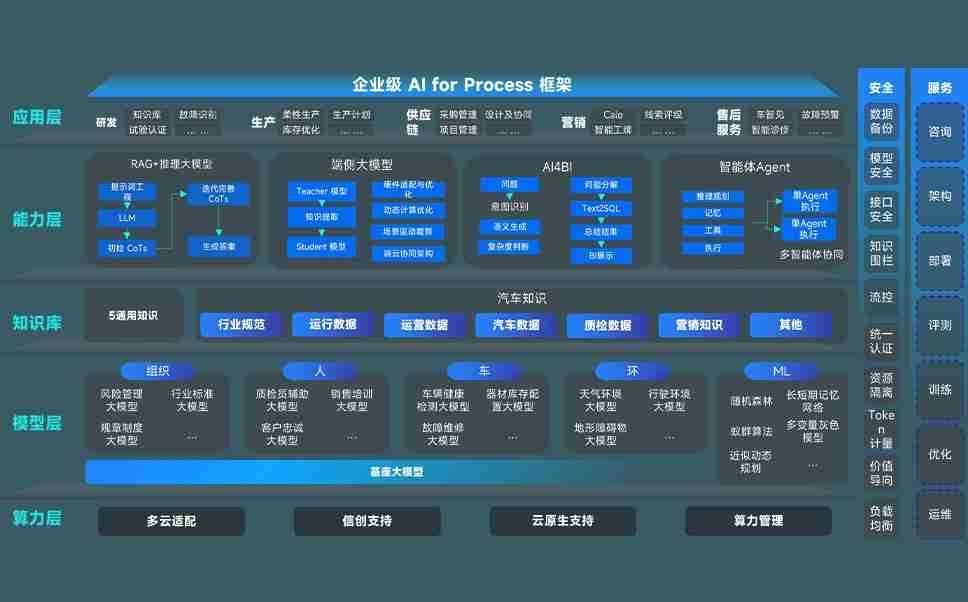 端到端的一站式AI工作空间深度融合了从企业战略规划到日常经营的全流程业务板块,,,定向解决车企内部领域多、、、、部门多、、、链条长、、、场景碎片化等难题,,,,支持车企快速构建以AI为核心的生产力写作体系,,,,实现任务执行与AI能力的无缝集成与交互